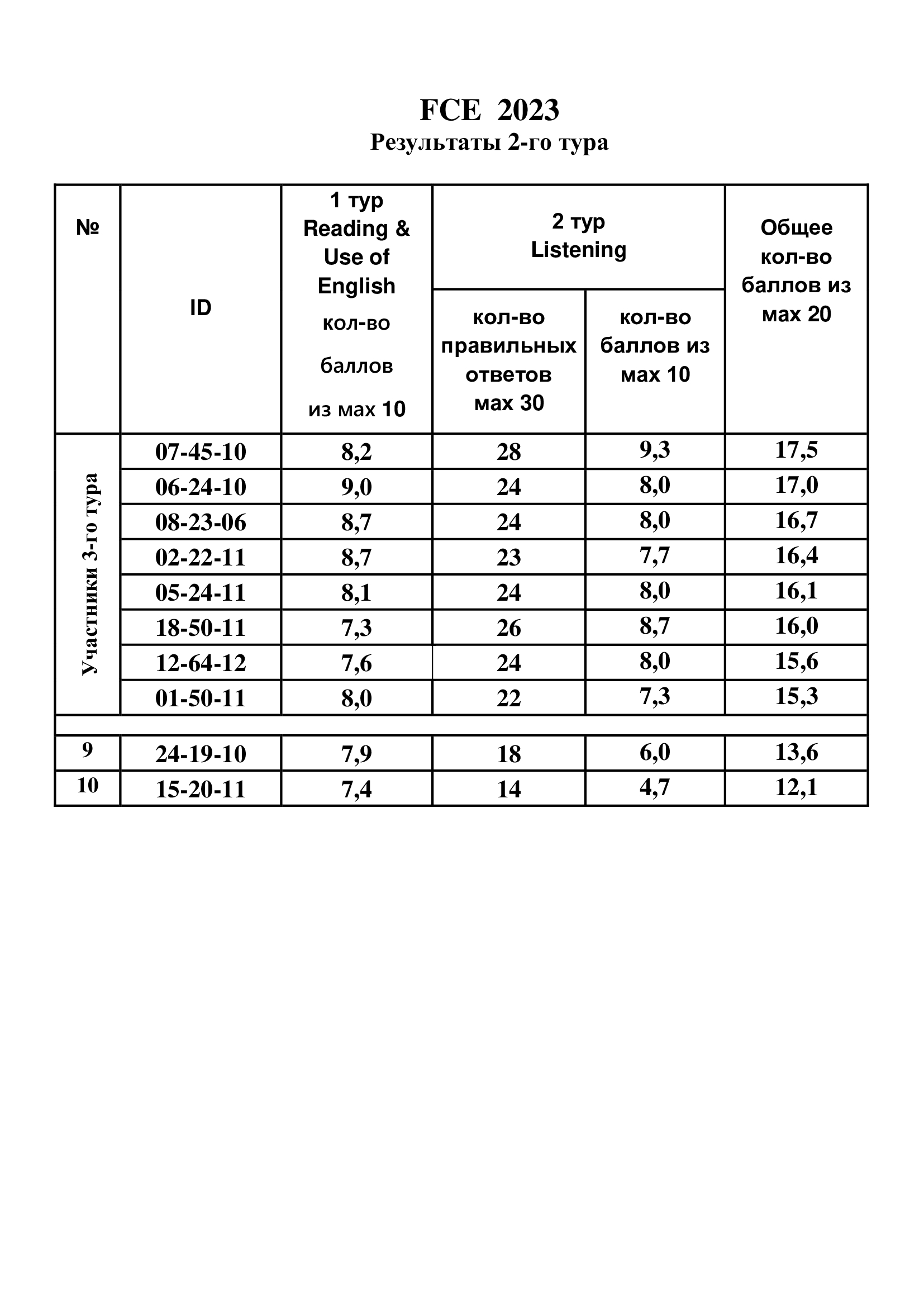 Результаты 2-го тура FCE