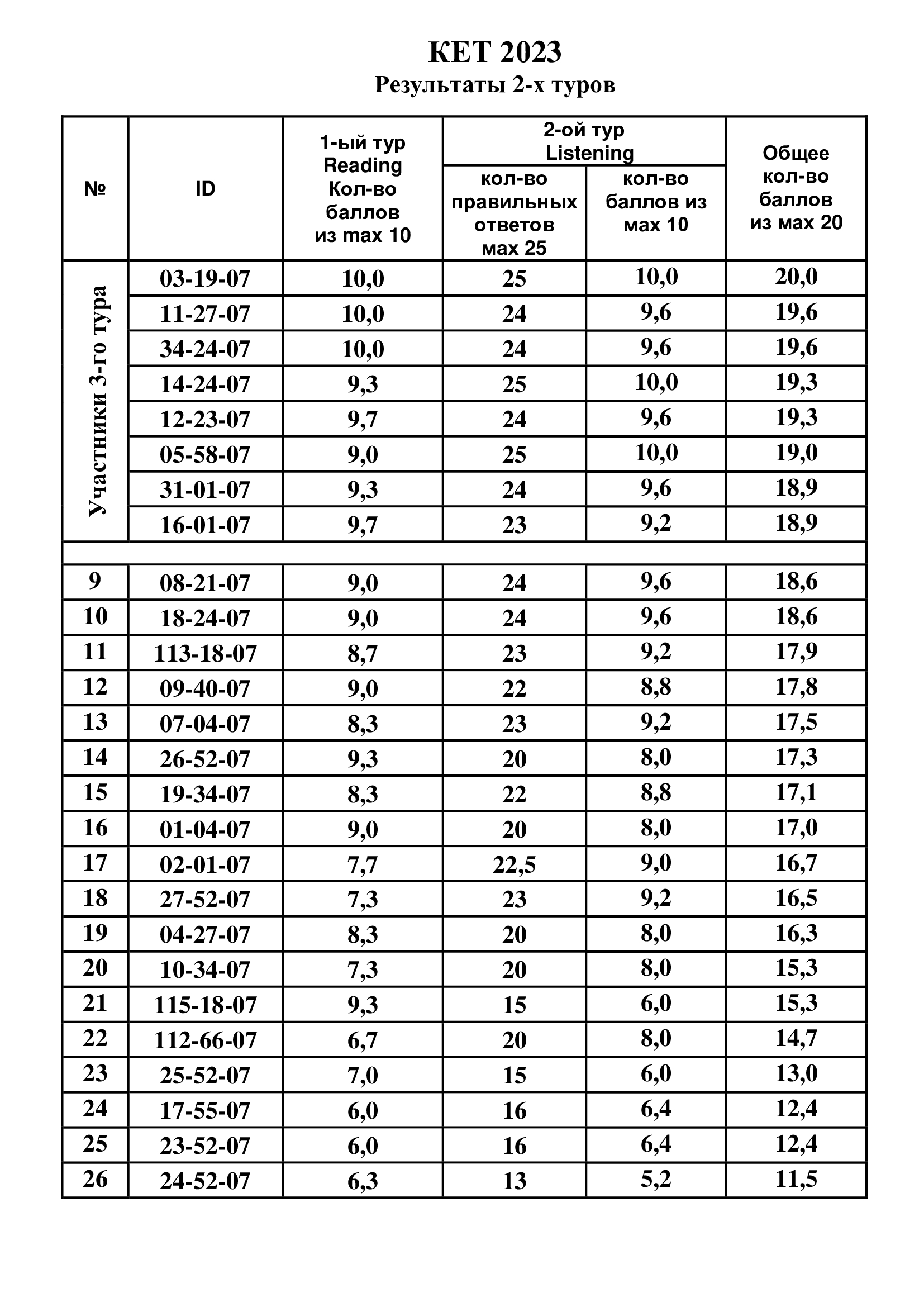 Результаты 2-го тура КЕТ