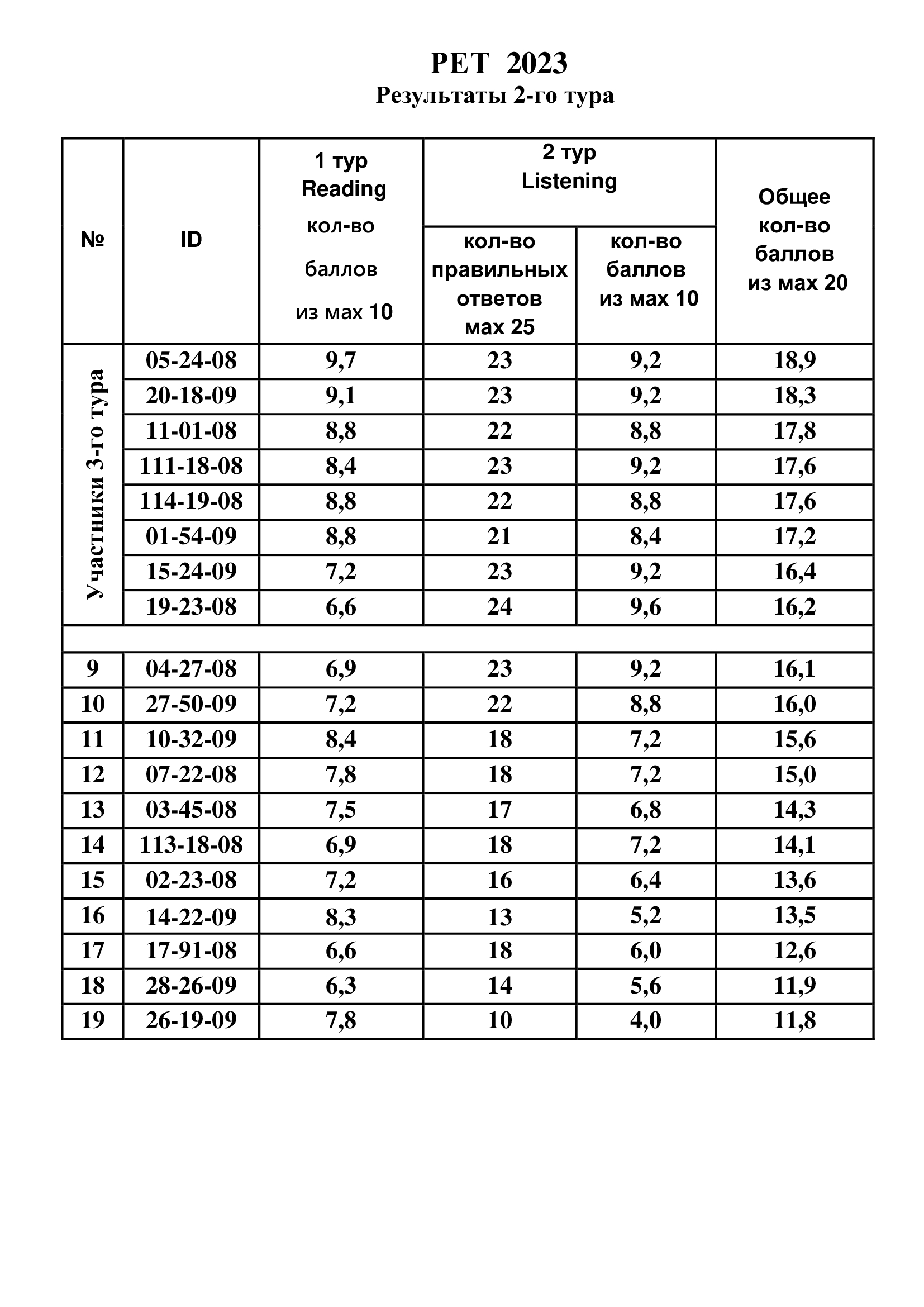 Результаты 2-го тура PЕТ