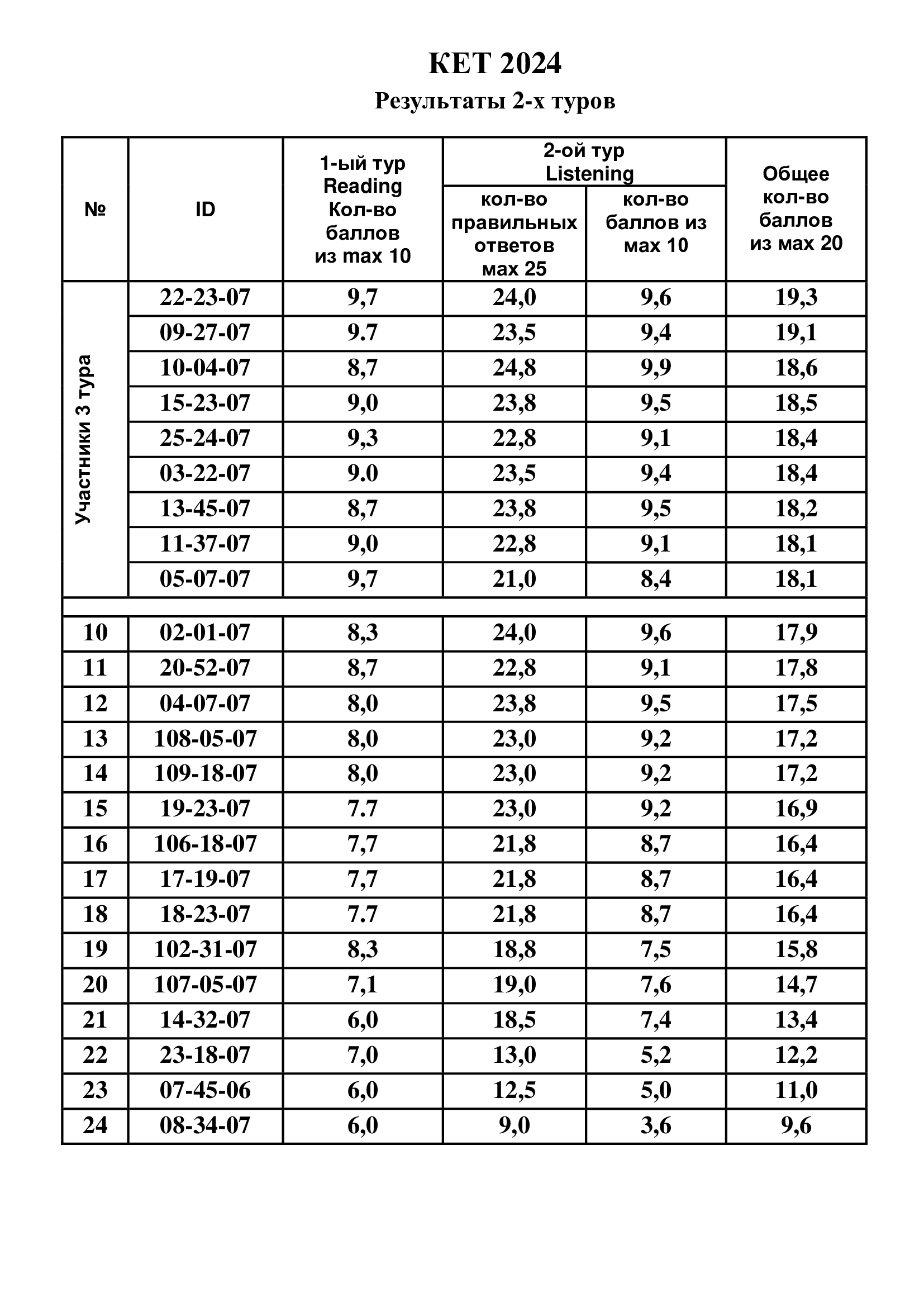 Результаты 2-го тура КЕТ