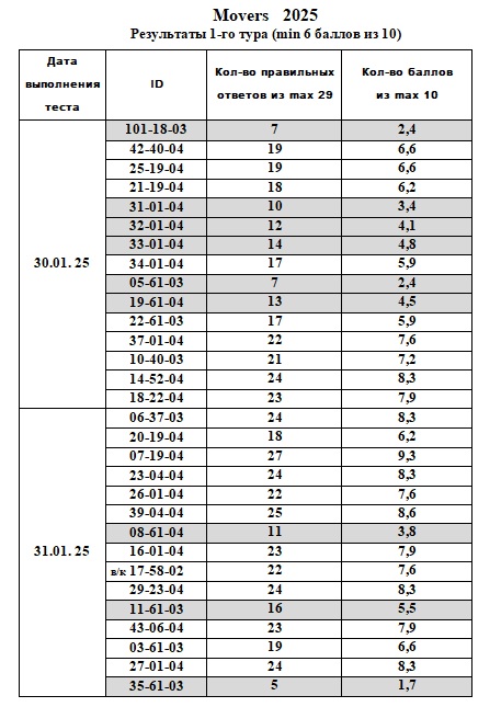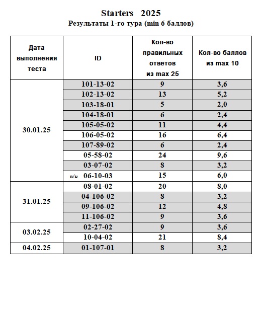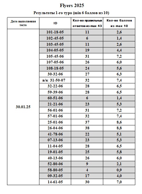 Посмотреть итоги 1 этапа 1 тура: