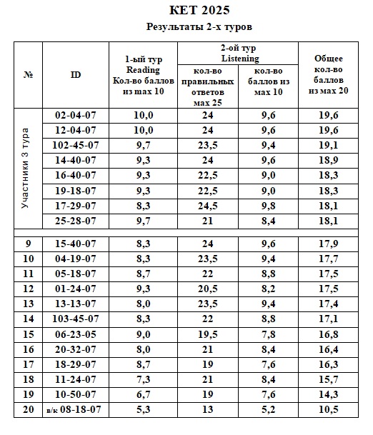 Результаты 2-го тура КЕТ
