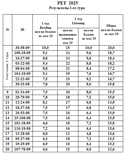 Результаты 2-го тура PЕТ