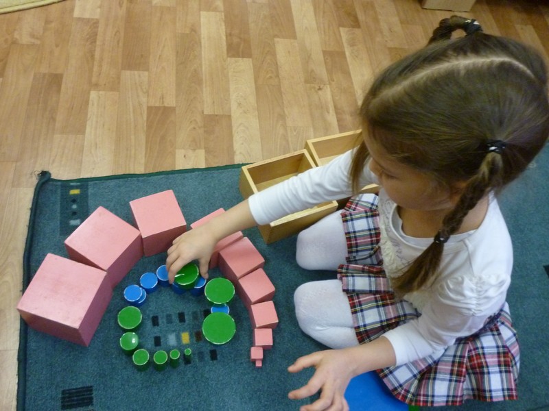 Цель: подготовить ребенка к переходу на новый абстрактный уровень развития мышления, речи и математических представлений; способствовать развитию всех органов чувств: зрительного, слухового восприятия, тактильных, тепловых, вкусовых, стереогностичечских (определение наощупь), барических (чувство тяжести) ощущений, системы представлений о качествах окружающих предметов, их разнообразии; развить умение сравнивать, анализировать, выявлять закономерности; подготовить к изучению математики, биологии, географии, других направлений; обеспечить развитие мелкой и крупной моторики;