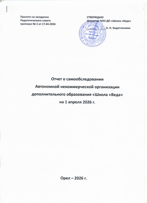 ОТЧЕТ О САМООБСЛЕДОВАНИИ АНО ДО «ШКОЛА «ВЕДА» 2026